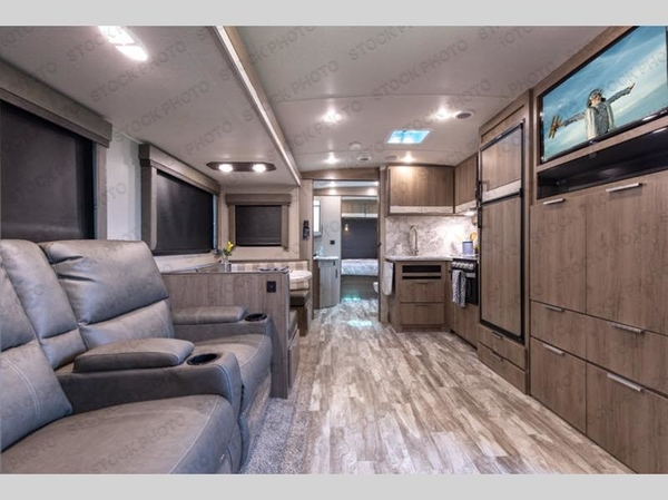 Just imagine leaving the world behind and secluding yourself away with your favorite people in your Grand Design Imagine travel trailer! The Imagine has been designed to enjoy extended season camping with its Four-Season Protection Package. This package includes a high-capacity furnace, a heated and enclosed underbelly with suspended tanks, a designated heat duct to the subfloor, and a high-density roof insulation with attic vent. You'll have maximum head room on the interior with 81" radius ceilings, and there is motion-sensor LED lighting in key areas so that you don't have to search for light switches in the dark. The exclusive drop-frame pass-through storage compartment is going to allow you to bring along lots of equipment, and the universal docking station is an all-in-one location for utilities and hook-ups. You'll also have industry-leading tank capacities so that you can fill and empty your tanks less often.