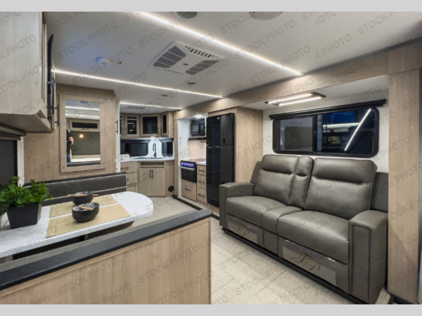 This Imagine XLS travel trailer has theater seating and a booth dinette that you can use any time you need a little break from the outdoors. If you want to come in and grab a coffee, put together a puzzle, or work on your itinerary for the week, just put up your feet and relax. You could even switch on the LED HDTV if you want a little entertainment. The front queen-size bed has a privacy curtain that you can draw to create a semi-private bedroom, and in the back of the trailer you will find the rest of your amenities, like the kitchen and the bathroom. The large slide makes it easy to enjoy spending your time indoors, but if you do want to get back outside, you can sit underneath the 18' electric awning for some shade.
