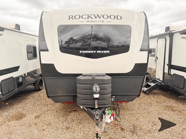 Each Rockwood Mini Lite travel trailer by Forest River is constructed with a fully laminated one-piece walkable roof, sleek frameless windows, and a six-sided full aluminum frame for strength and durability. The 12V thermostatically controlled heated tanks, plus radiant foil in the underbelly will allow you to camp well into the colder months, and the 200W roof solar panel will be perfect for a little off-gridding. Each model includes solid surface kitchen countertops, hidden hinge cabinet doors, roller shades, plus many more interior features. Having an AIR 360+ omnidirectional antenna with WiFi prep on board gives you the option to get some work done if it's needed, and the power tongue jack provides hassle-free set up, so you can enjoy more time relaxing!