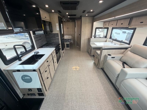 You can be sure to enjoy the journey and the stay in this coach! Once you stop for the day, you can make lunch with the kitchen appliances, then dine at the booth dinette within the large slide out. There is also power theater seating here across from a TV for easy viewing. A 10 cu. ft. 12V refrigerator and pantry will let you keep food stocked, and the closet with washer and dryer prep gives you the option to add these appliances. The 70" x 80" king bed slide is sure to provide a great night's rest, and there is a wardrobe to keep your things tidy. And of course, a full rear corner bath onboard makes staying fresh easier than ever!
