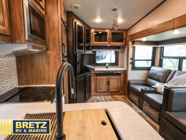 Experience a comfortable tow with every one of these Jayco Eagle HT fifth wheels and travel trailers! They are built with a Stronghold VBL aluminum frame, vacuum bond laminated gel-coated fiberglass exterior walls, and a Magnum Truss roof system with a one piece, seamless DiFlex II material that has been tested as the strongest roof in the industry. The HELIX cooling system comes with an exterior mounted 15,000 BTU "Whisper Quiet" A/C unit, Jayco exclusive insulated dual duct design, directional and closeable A/C vents, and larger air vents with user accessible filters so you can stay cool even on the hottest summer day. With a mandatory Luxury package, you will get handy features like the JAYCOMMAND smart RV system to control your unit at the touch of a finger, an electric auto-leveling so you can set up quick and easy, and blackout roller shades for added privacy. Come find the right one for you today!