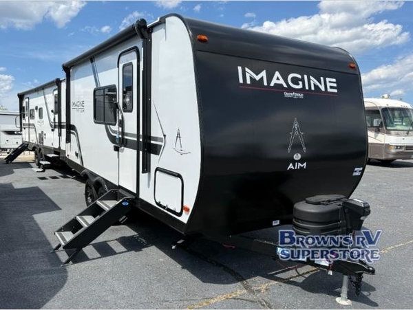 Aim for new destinations in one of these Grand Design Imagine AIM travel trailers! They are constructed to a superior standard with the 4-Seasons Protection Package that features a heated and enclosed underbelly with suspended tanks, a moisture barrier floor enclosure, a double insulated roof and front wall, and more. There is backup camera prep outside, along with a universal docking station, and a power tongue jack. You are sure to feel at home with residential cabinetry, premium window treatments, residential countertops, and a spacious walk-in shower to name a few comforts. The on-demand tankless water heater is a feature you won't want to camp without and the hi-definition LED TV will ensure you'll never go bored on rainy days. Each model also comes with four AIM packages; the Peace of Mind Package, The Ultimate Power Package, The 4-Season Protection Package, and the Solar Package!